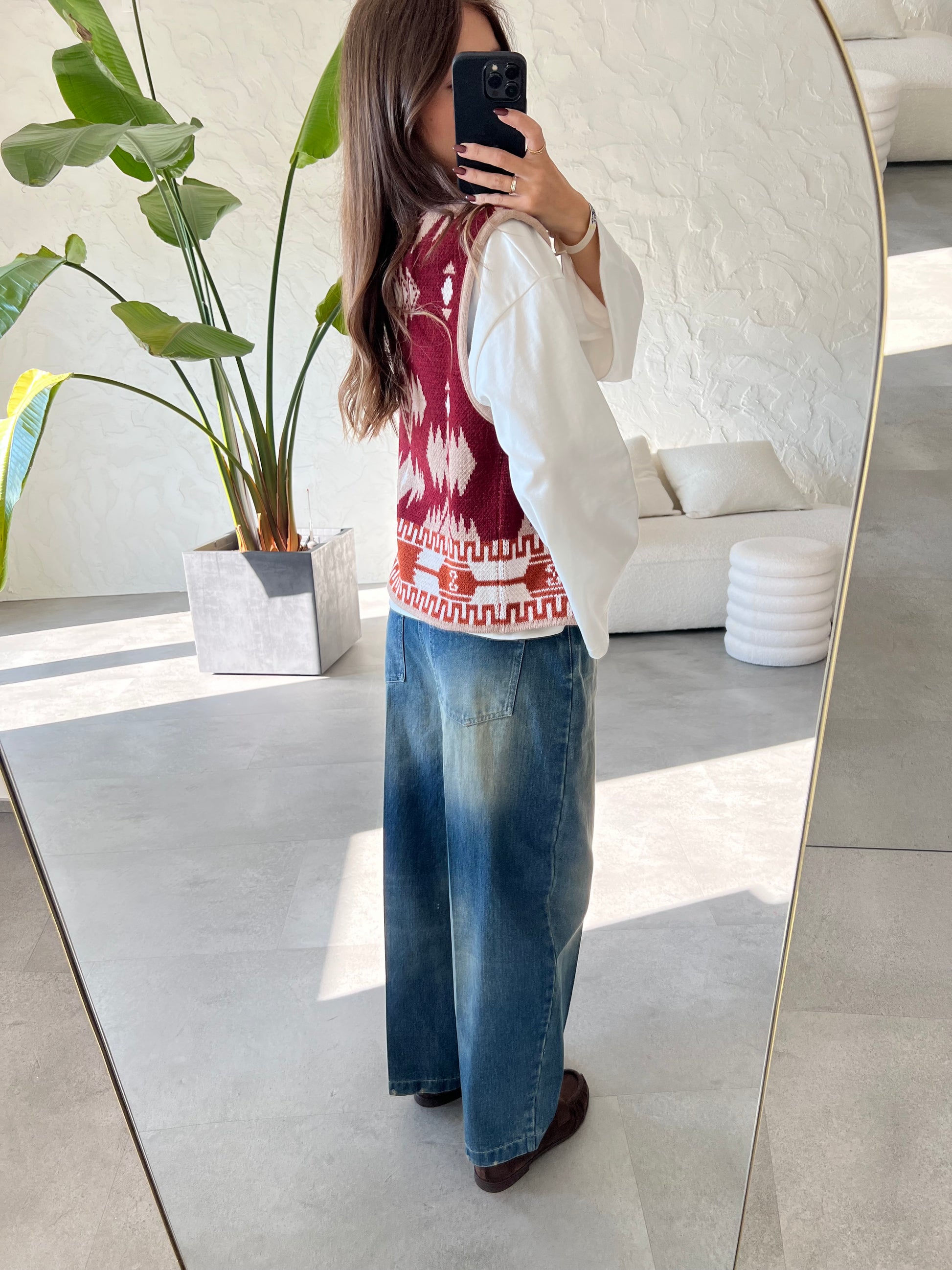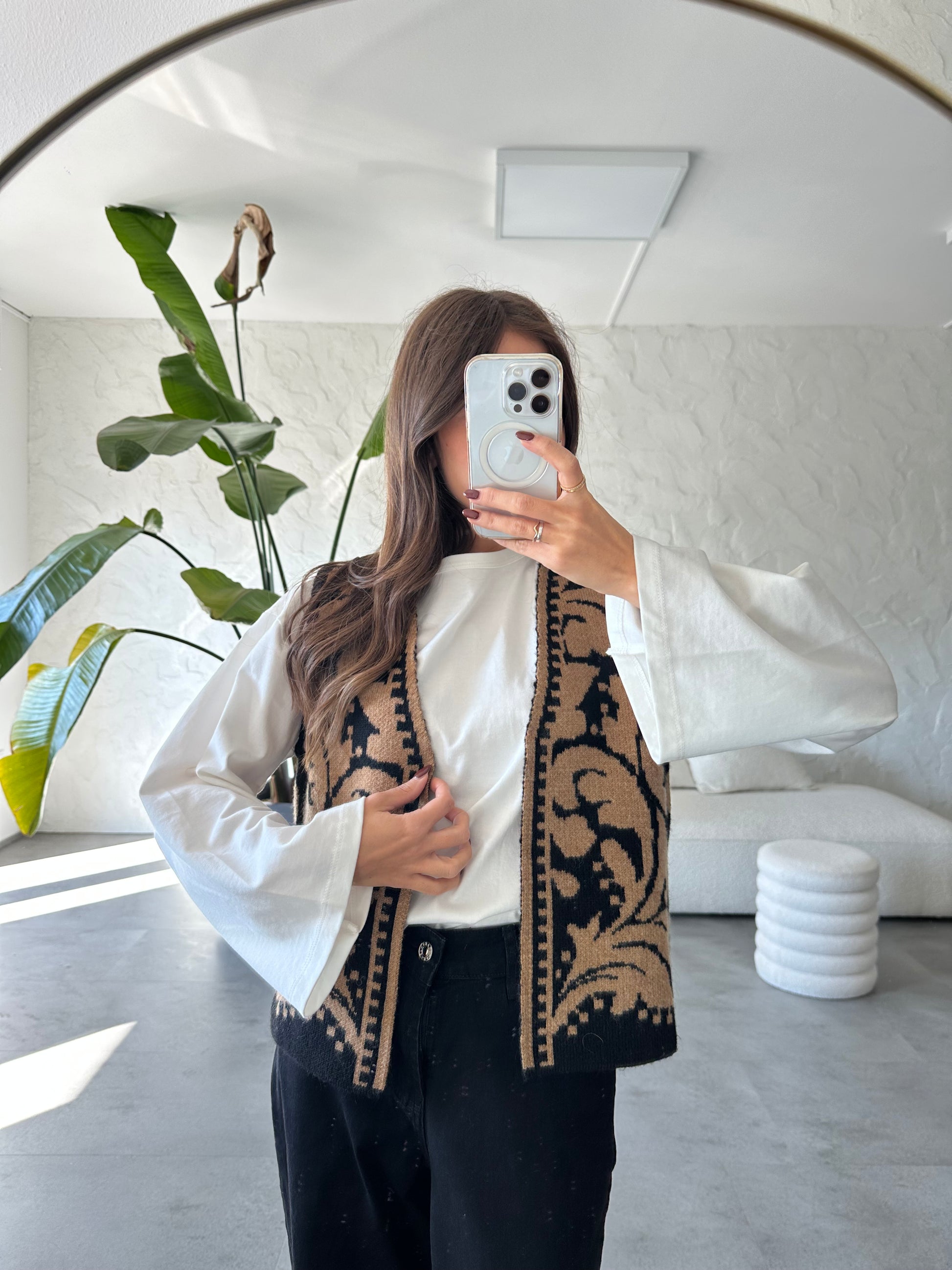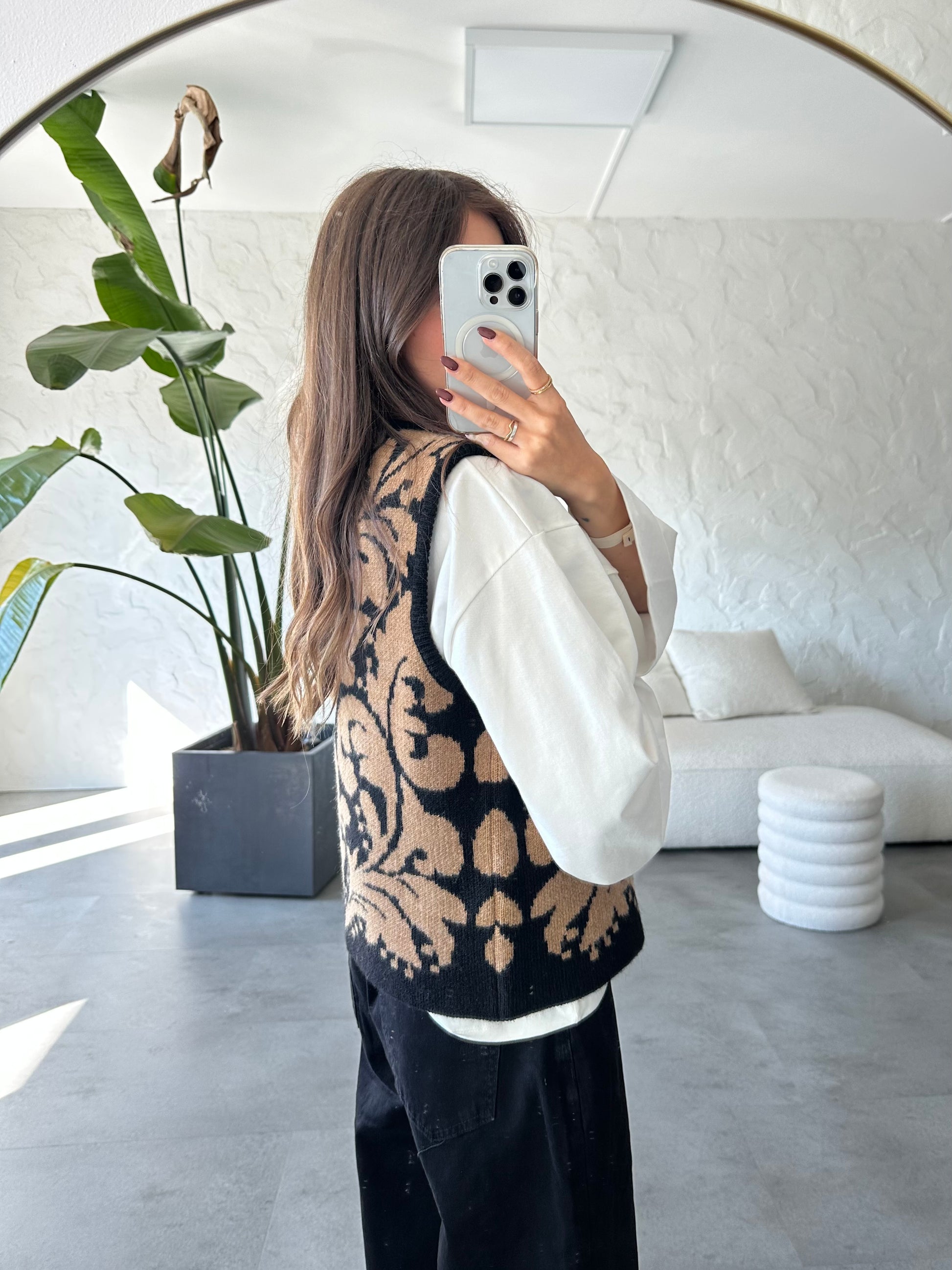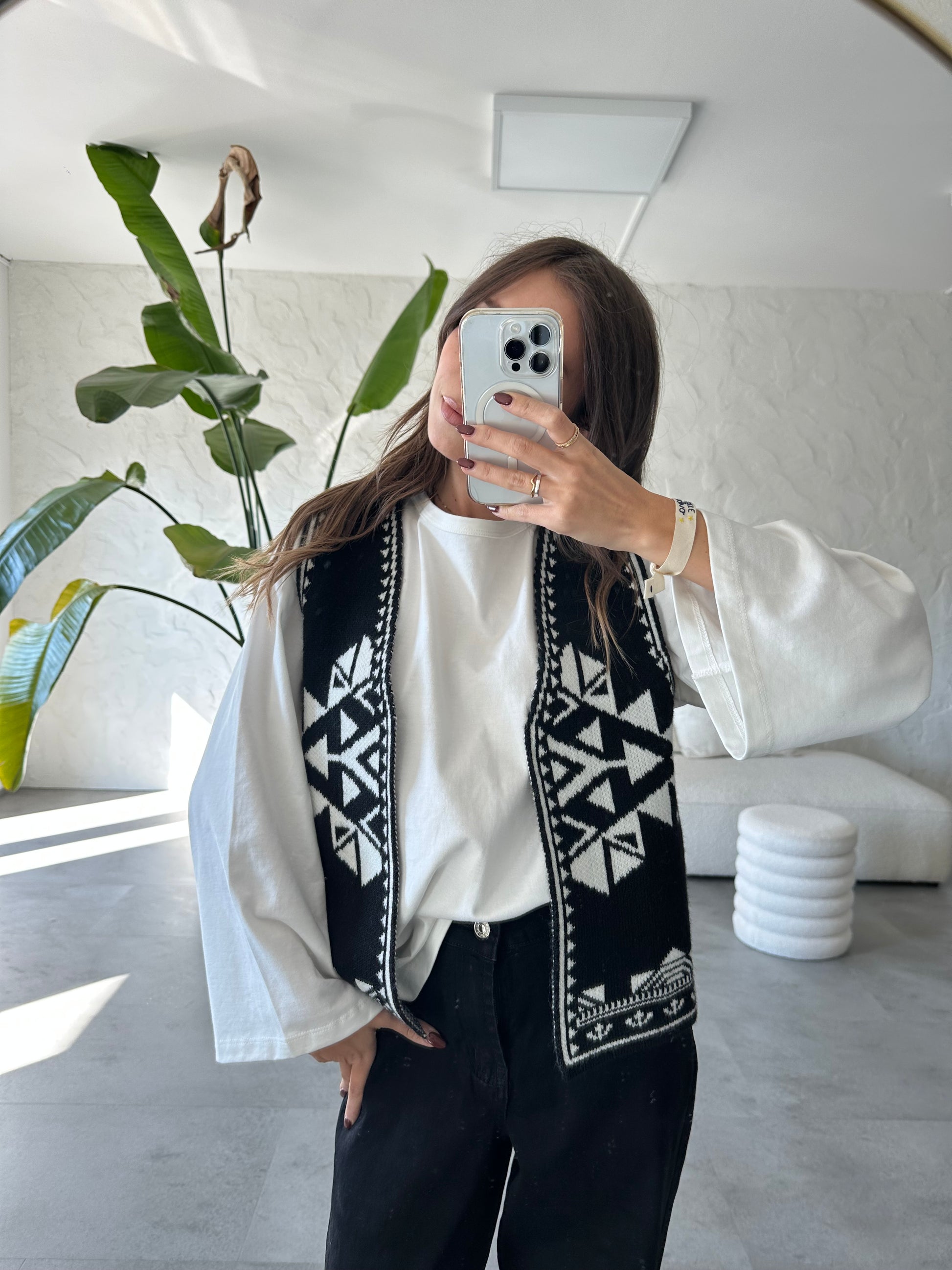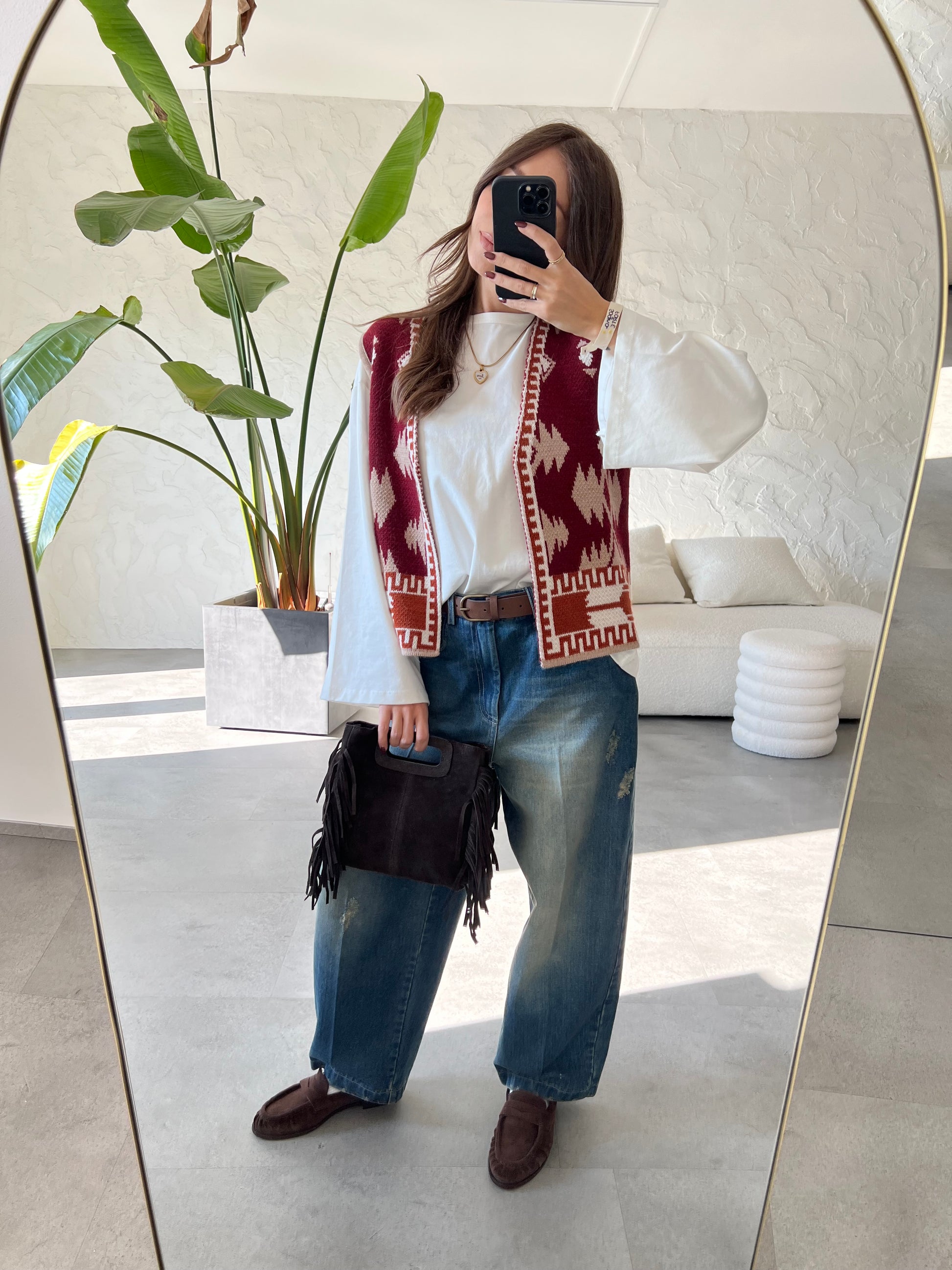 Gilet Vicolo in maglia con motivo etnico, taglia unica.