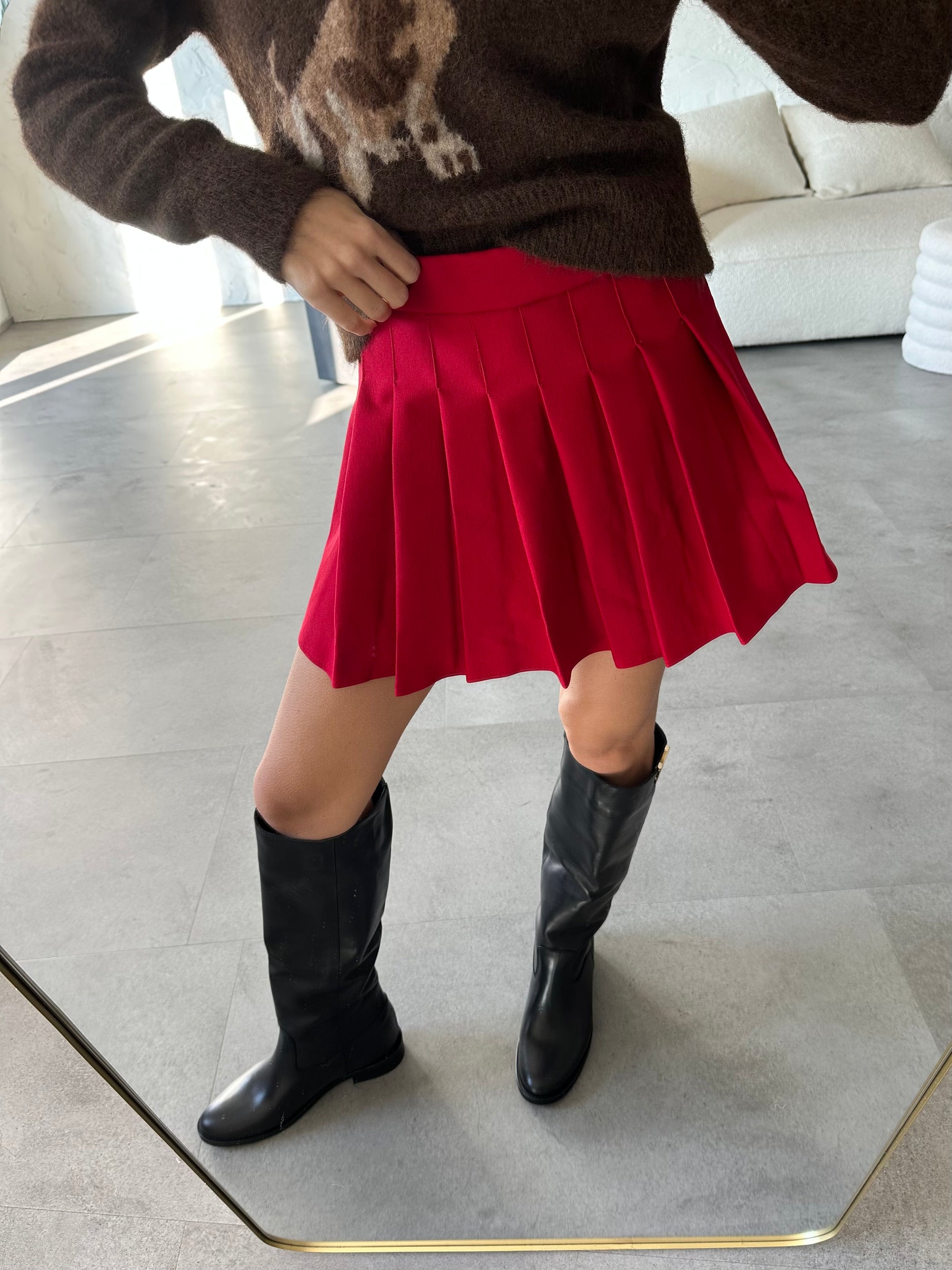 Gonna plissè con pantaloncino sotto ed elastico in vita, taglia unica.
