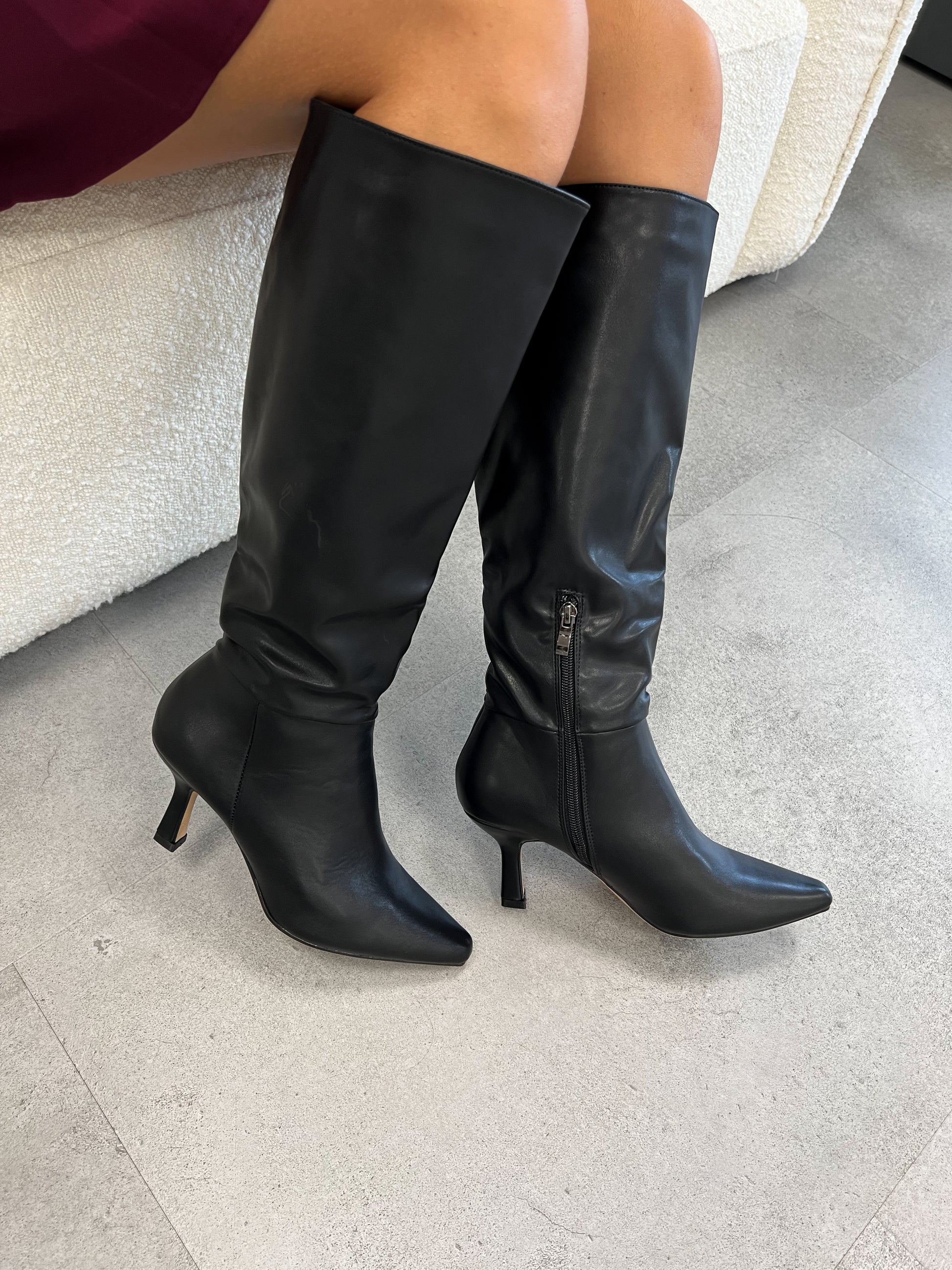 Stivale Kharisma alto con tacco 7cm circa e zip interna.