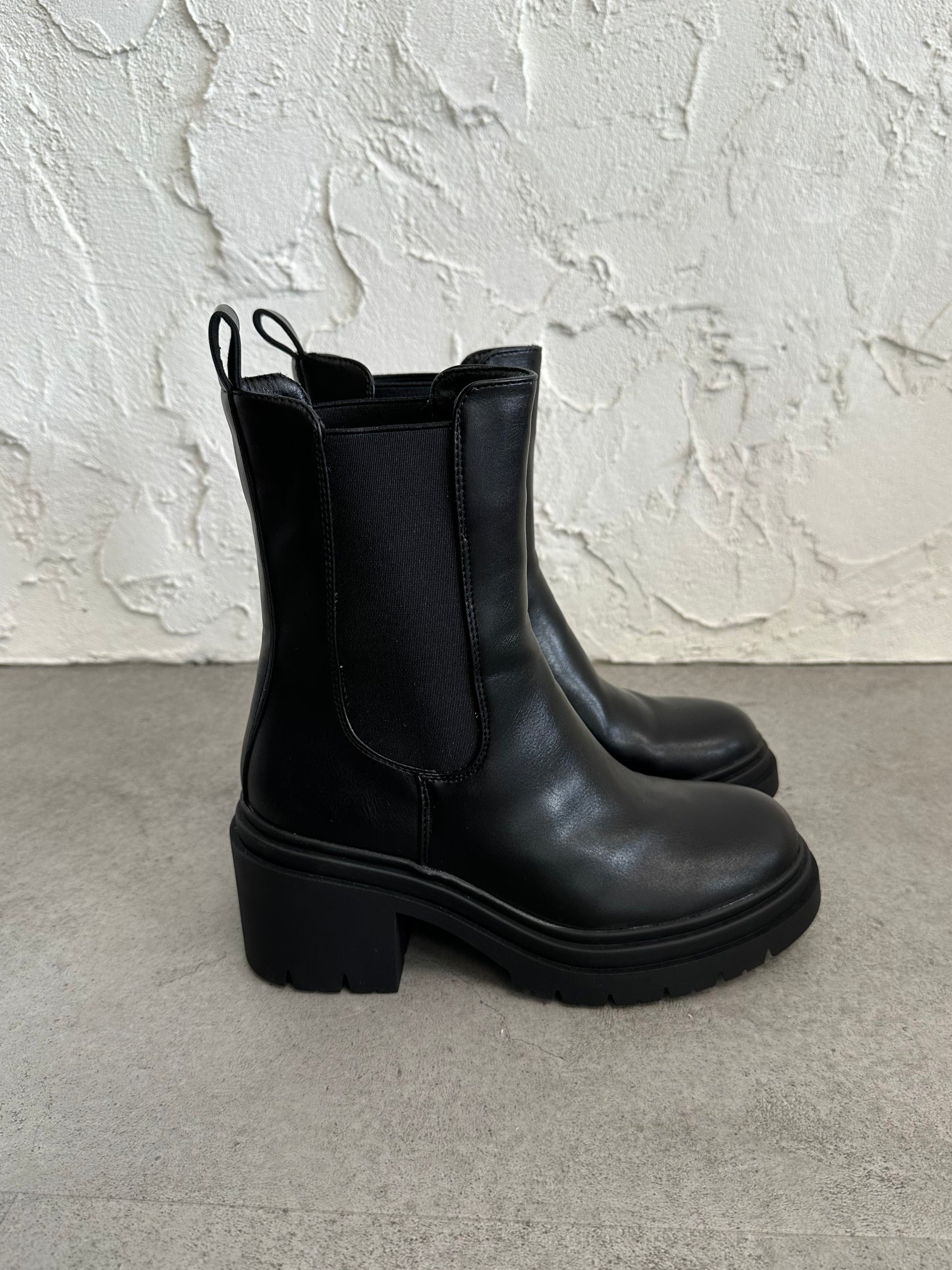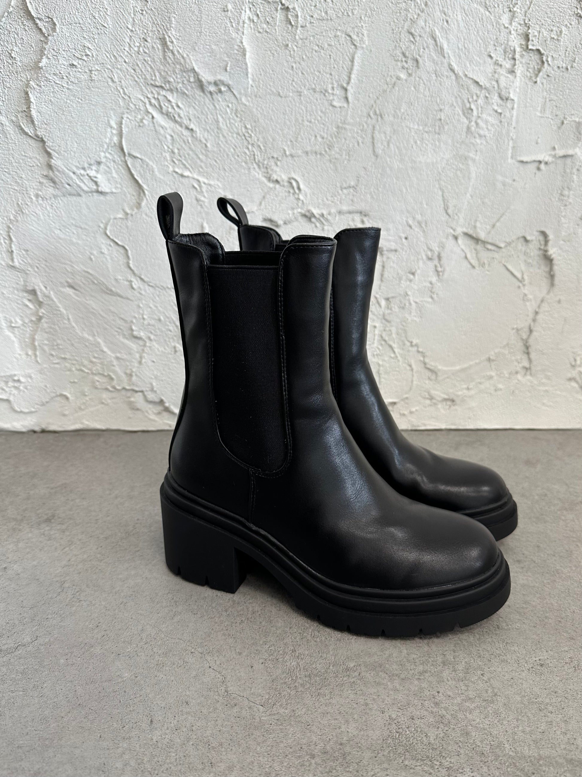 Il classico stivaletto chelsea viene rivisitato con un tacco 5,5cm per renderlo ancora più grintoso.