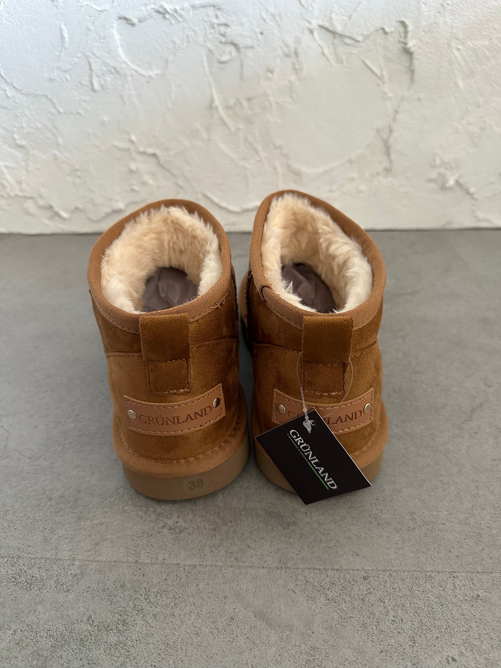 Stivaletto alla caviglia imbottito con morbida pelliccia, modello UGG, realizzati da Grunland con pelle e pelliccia sintetica.