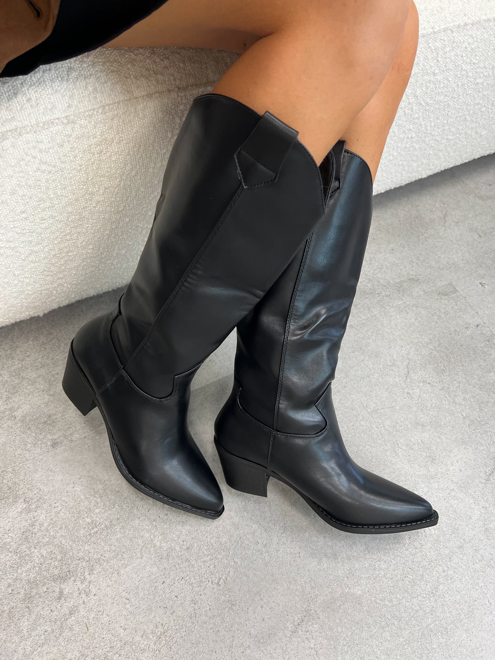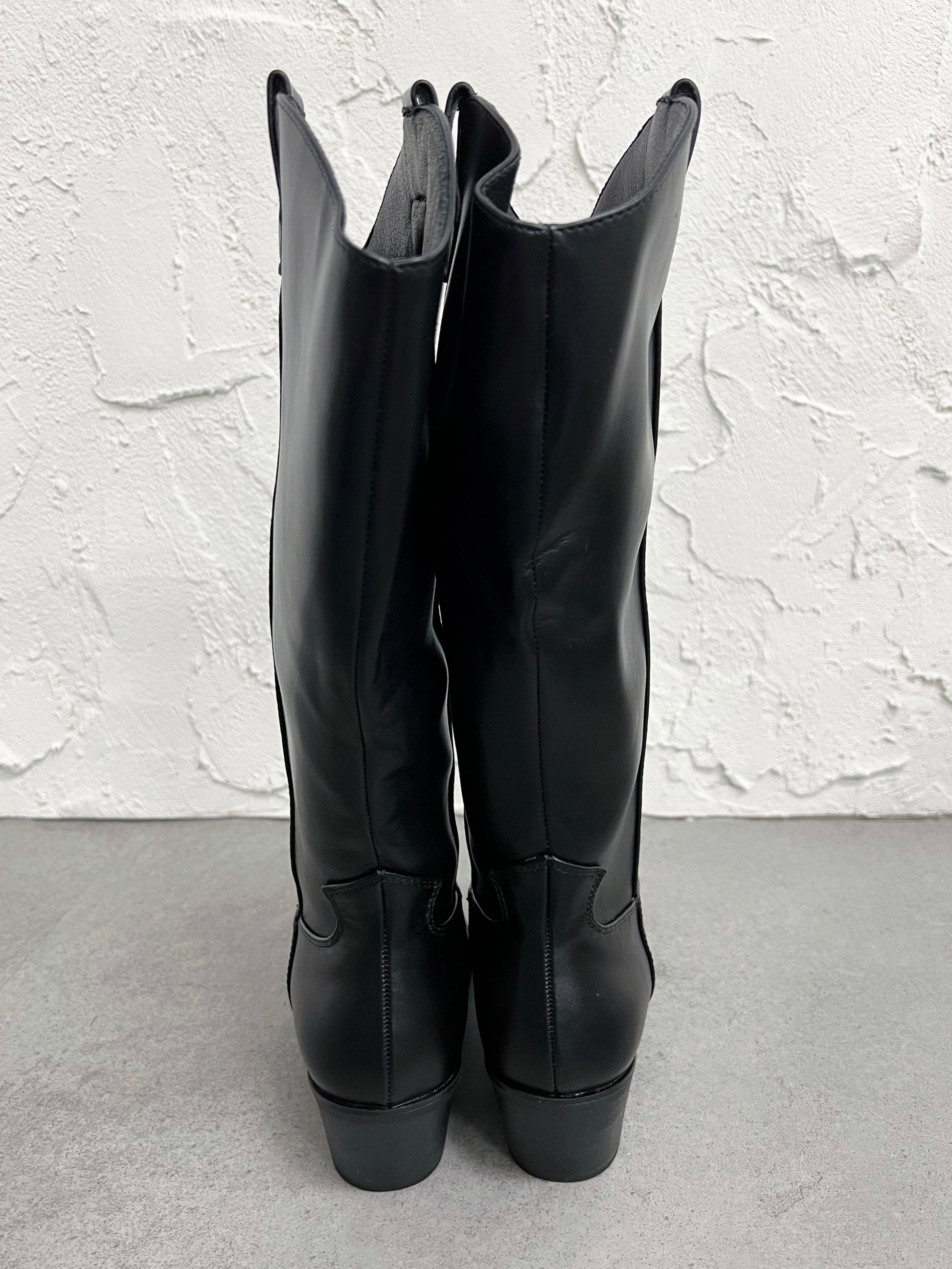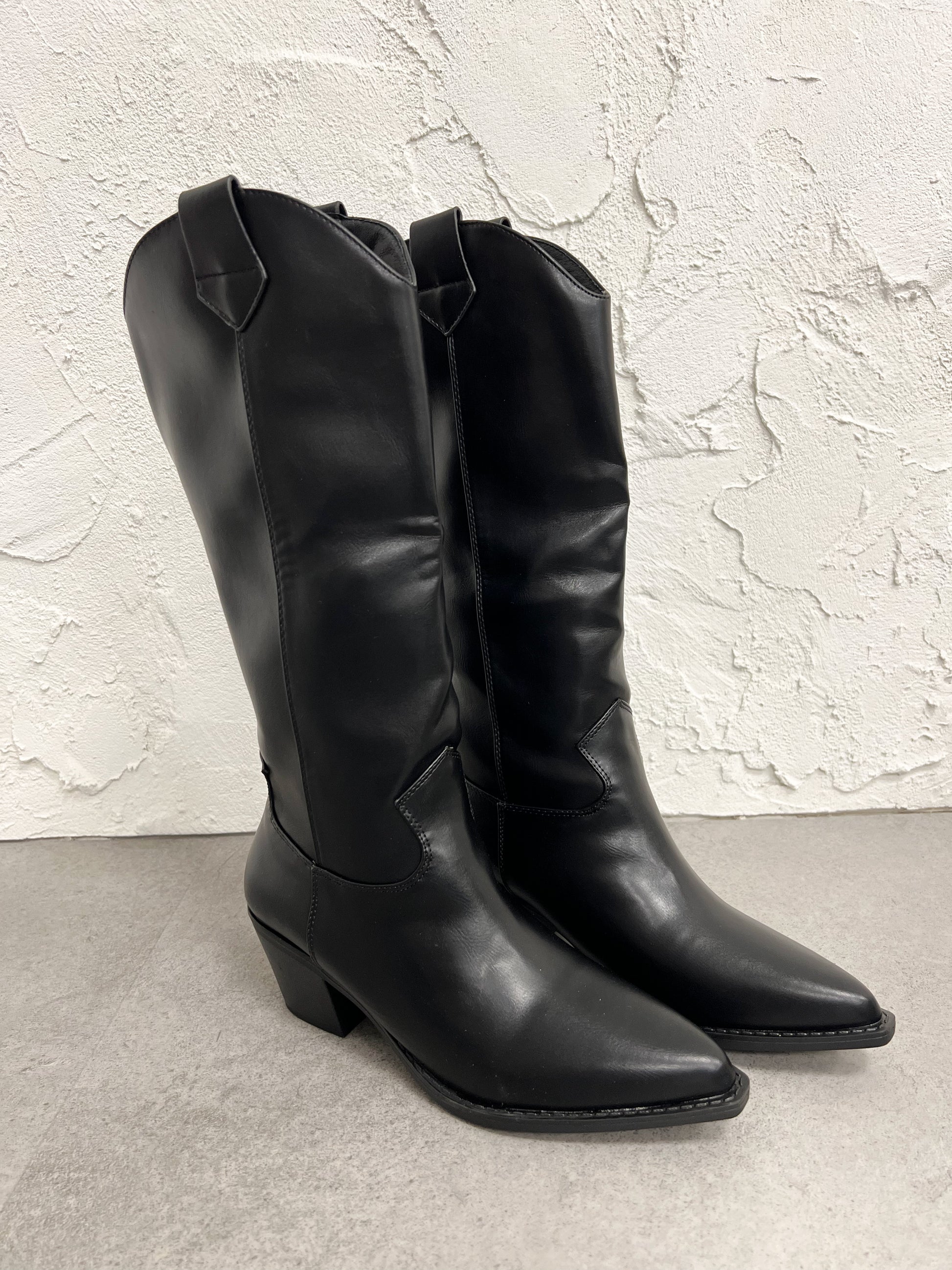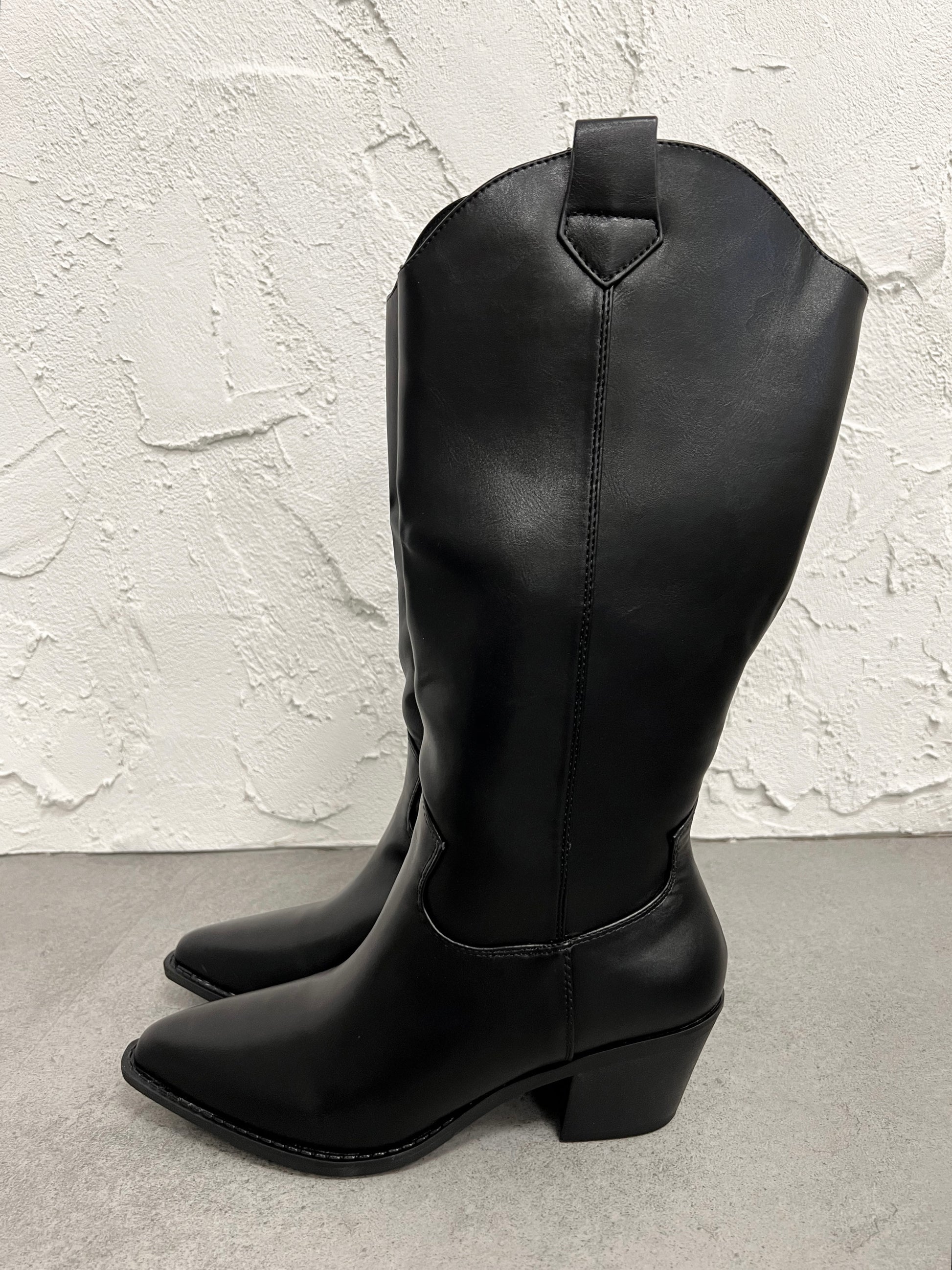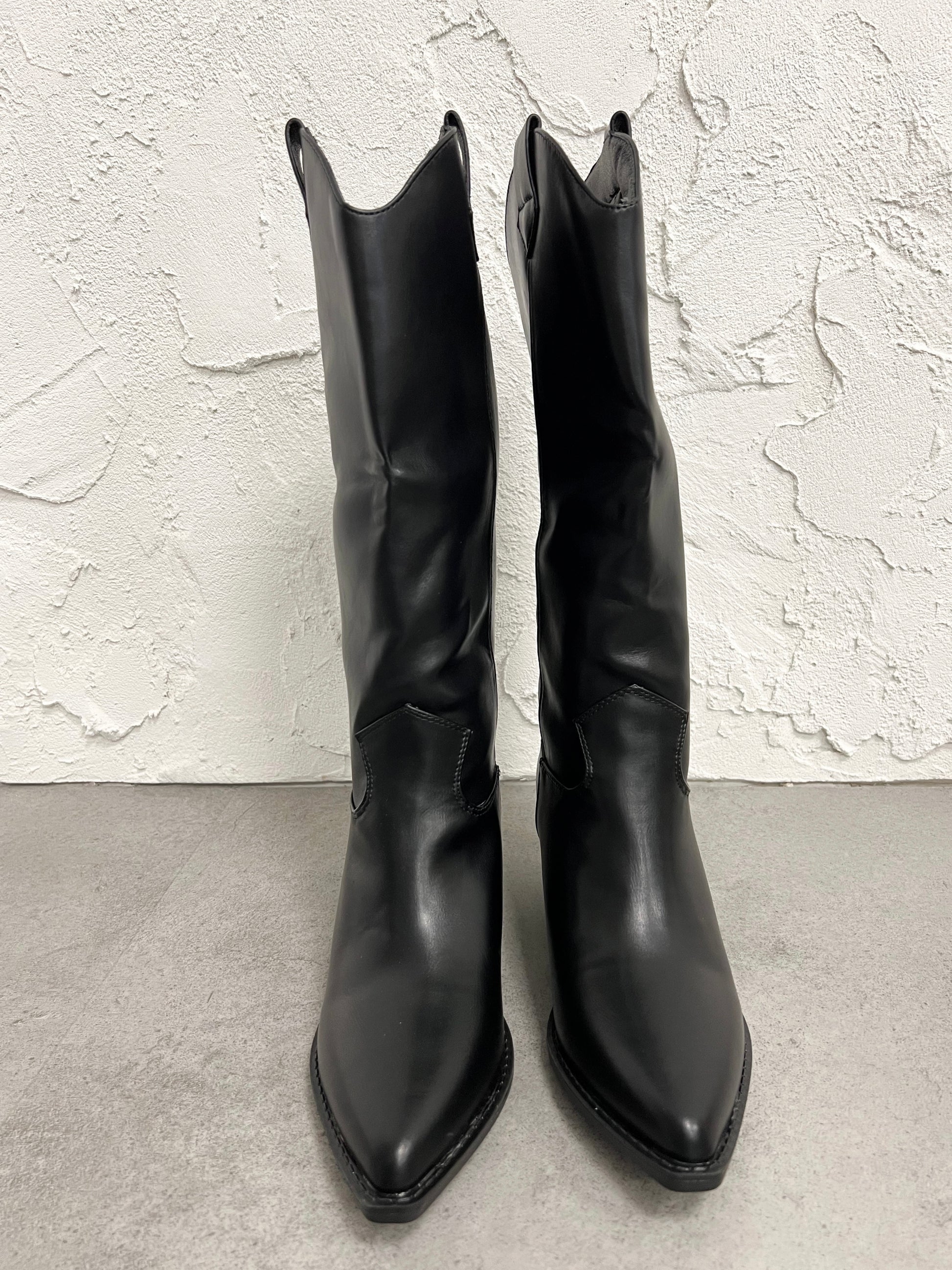 Il texano in similpelle Kharisma è caratterizzato da gambale alto fin sotto al ginocchio, punta affusolata e tacco robusto di 5 cm. Perfetto per un look casual!